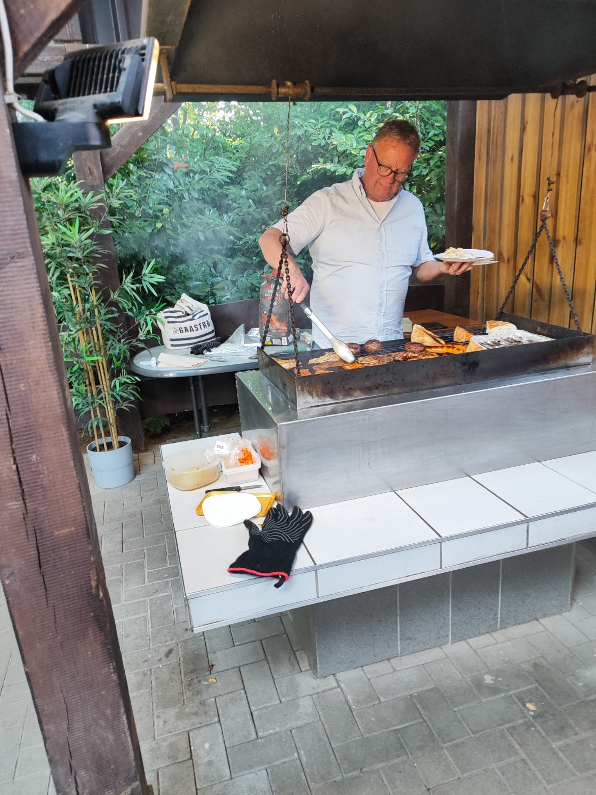Nach der 1. Serie konnte dann sich jeder dem Essen widmen. Wolfgang und Jan haben hier den Grillmeister gespielt. Das Fleisch musste natürlich zuvor von Lothar eingekauft werden. Einige wenige Mitglieder haben ihr Können in Sachen Kochen und Backen unter Beweis gestellt und natürlich die Ergebnisse mit allen Mitgliedern geteilt. Wenn nichts übrig geblieben ist, muss man davon ausgehen, dass es auch den Skatspielern geschmeckt hat. Später gab es dann noch selbstgebackenen Pflaumenkuchen.