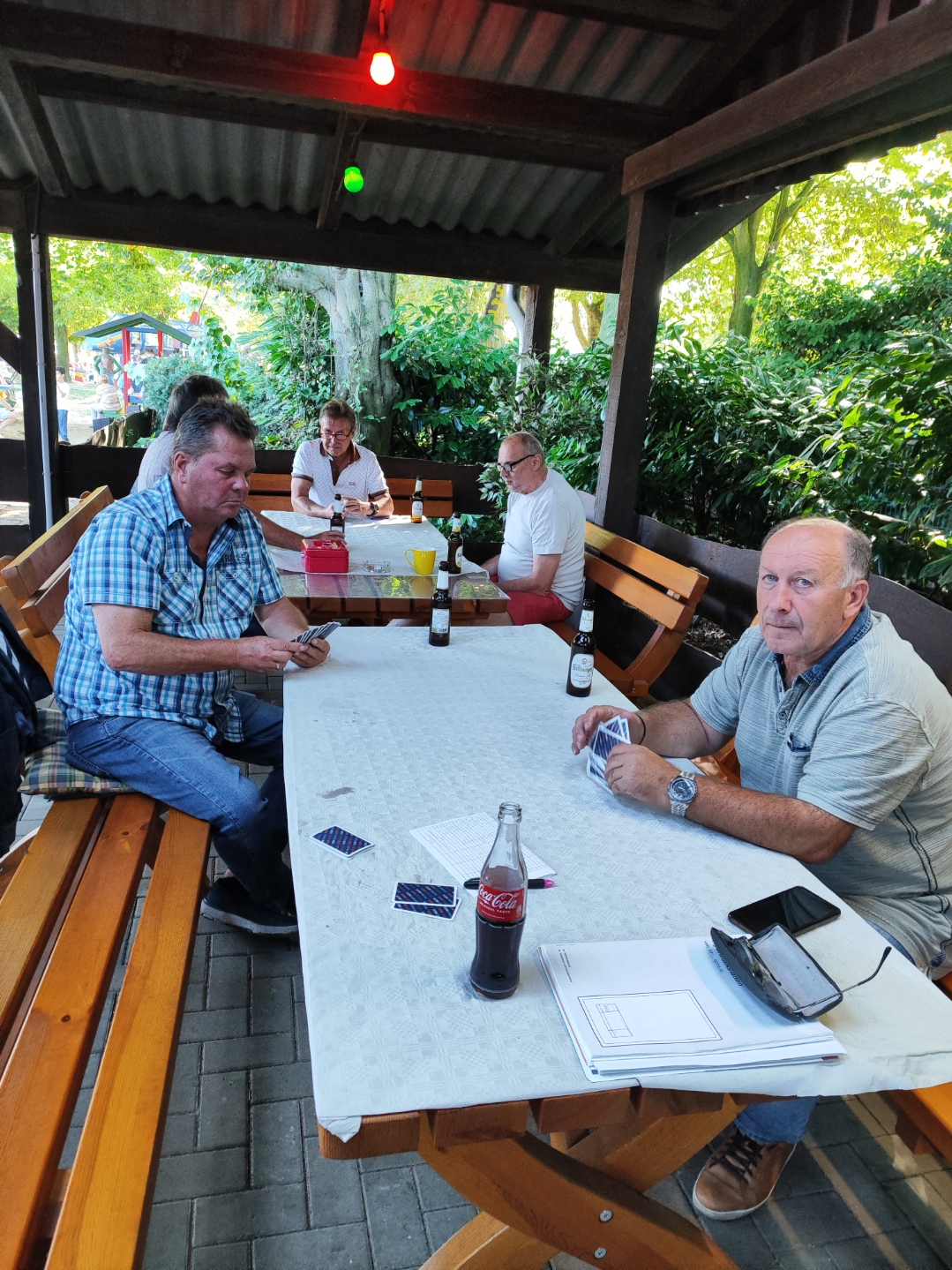 Am Samstag den 21.9.2024 haben 14 Mitglieder auf dem Ponyhof Leiting in Werth einen schönen Tag genossen. Die übrigen waren verhindert, konnten oder wollten es sich hier nicht gemütlich machen. Ab 11.oo Uhr wurde dann zunächst eine Runde Skat gespielt wobei alle Teilnehmer ein Preisgeld erhielten ohne ein Startgeld zu entrichten. In allen Serien gab es Sonderpreise für z.B. Grand ohne 4, Null Hand, Farbenspiel ohne 5, Grandouvert, 3-stellige Schnapszahl soweit diese bis dahin noch nicht verbraucht waren. Diese Sonderpreise gab es natürlich nur wenn diese Spiele denn auch gewonnen wurden.